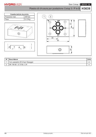 Piastra di chiusura per postazione Cetop 3 / P in B H3639