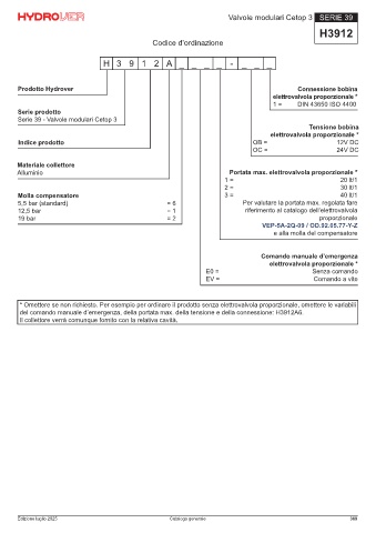 * Omettere se non richiesto. Per esempio per ordinare il prodotto senza elettrovalvola proporzionale, omettere le variabili